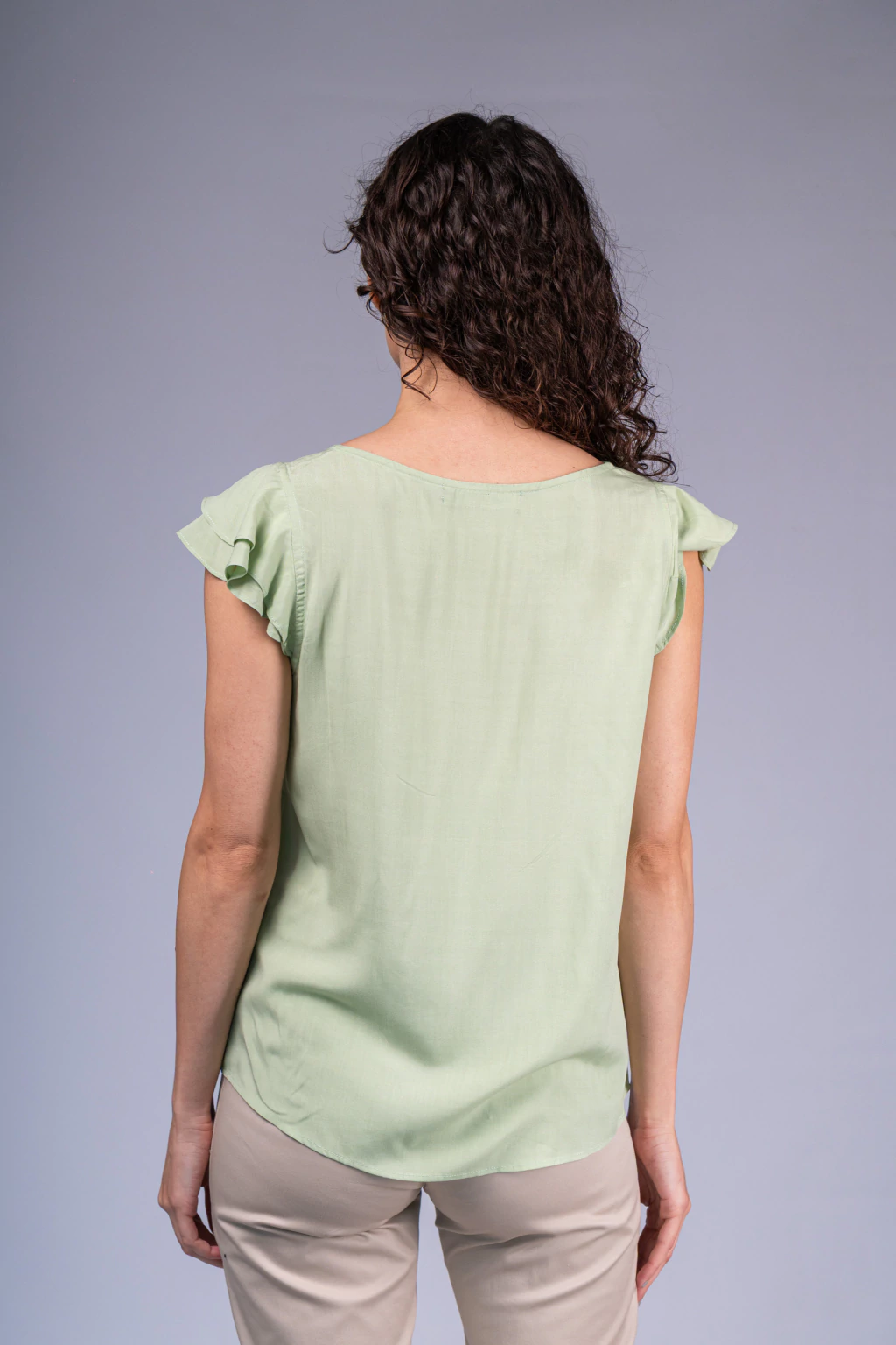 Confeccionada en una tela suave y liviana, que garantiza frescura y comodidad durante todo el día. Su textura delicada y su caída elegante hacen que esta blusa sea una pieza imprescindible en tu guardarropa.
